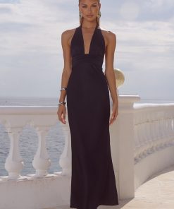 Runaway The Label Women’s Classification Sylvie Plunge V-neck Maxi Dress – Noir | Neck Maxi Dress