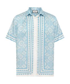 Good news — we’re restocking this style soon! If your size is sold out, select your size and register your email to be notified when it’s available. With a silky finish and mosaic inspired print, our Bodhi Shirt is a versatile piece to elevate your Euro summer wardrobe. – Relaxed fit- Short sleeves- Centre front button closure- Unlined, non-stretch- 50% Rayon u0026 50% Cotton Please refer to care label for garment care instructions. Colours may appear slightly different to the website due to lighting, computer picture resolution and monitor settings. Print placement may vary between each individual item. ~section~ – Length (Size L): 74cm/29inches. – If you need more help with sizing, see our size guide or email us at [email protected] ~section~ Gio wears a size L and is 188cm tall.