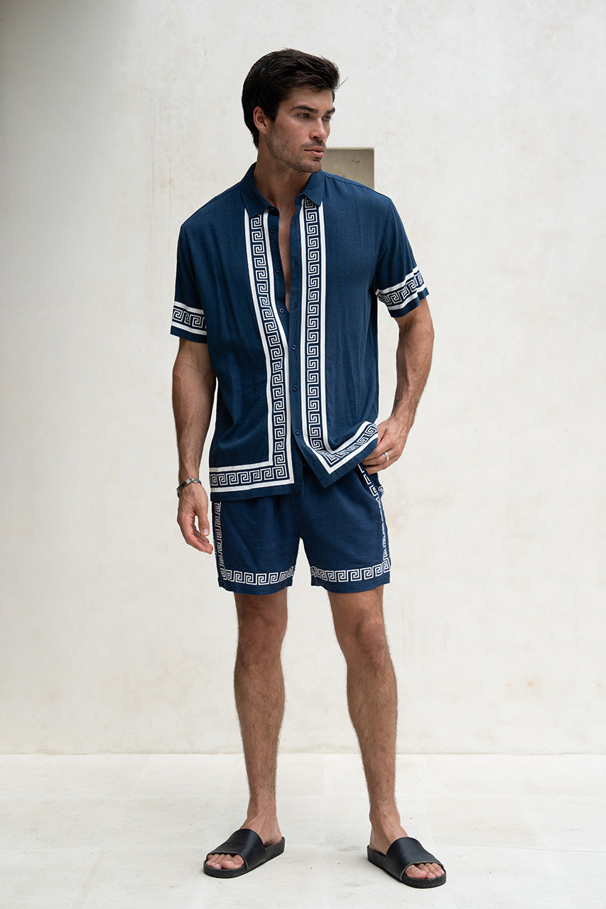 A relaxed fit, timeless tone and print motif, our Jacob Shirt is understated and effortless, pair with our Jacob Short for the complete look. – Relaxed fit- Short sleeves- Centre front button closure- Unlined without st