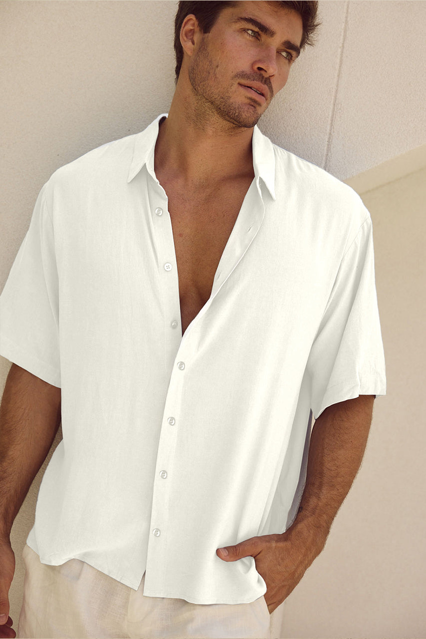 Good news — we’re restocking this style soon! If your size is sold out, select your size and register your email to be notified when it’s available. Our Jayden Shirt features a relaxed fit and is an easy to style piece. – Oversized fit – Size down for a more fitted look- V neck- Button closure- Unlined without stretch- 85% Rayon u0026 15% Linen Please refer to care label for garment care instructions. After washing, please ensure to iron the garment to return it to its original size. Colours may appear slightly different to the website due to lighting, computer picture resolution and monitor settings. ~section~ – Length (Size L): 76.5cm/30inches. – If you need more help with sizing, see our size guide or email us at [email protected] ~section~ Shaun wears a size L and is 188cm tall.