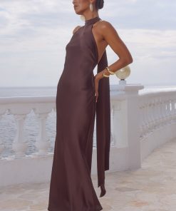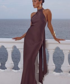 COMING SOON – Hold tight! This style will be yours by early September. Our Arabelle Maxi Dress features a classic silhouette, with a high neckline that ties and falls to beautiful sashes down the back. – Maxi length- High halter neck- Centre back invisible zipper- Lined, non-stretch- Body: 97% Polyester u0026 3% Spandex, Lining: 100% Polyester Please refer to care label for garment care instructions. Colours may appear slightly different to the website due to lighting, computer picture resolution and monitor settings. ~section~ – Length (Size S): 140cm/55inches. It is true to size. – If you need more help with sizing, see our size guide or email us at [email protected] ~section~ Annabel wears a size AU 8/ S/ US 4 and is 175cm tall.