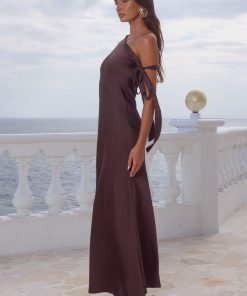 Our Viola Maxi Dress is a unique piece with an asymmetrical neckline that ties at the arm, perfect for a classic look with a twist. – Maxi length- Asymmetrcial neckline- Side seam invisible zipper- Lined, non-stretch- Body: 97% Polyester u0026 3% Spandex, Lining: 100% Polyester Please refer to care label for garment care instructions. Colours may appear slightly different to the website due to lighting, computer picture resolution and monitor settings. ~section~ – Length (Size S): 143-145cm/56-57inches. It is true to size. – If you need more help with sizing, see our size guide or email us at [email protected] ~section~ Natalie wears a size AU 6 / XS / US 2 and is 173cm tall.